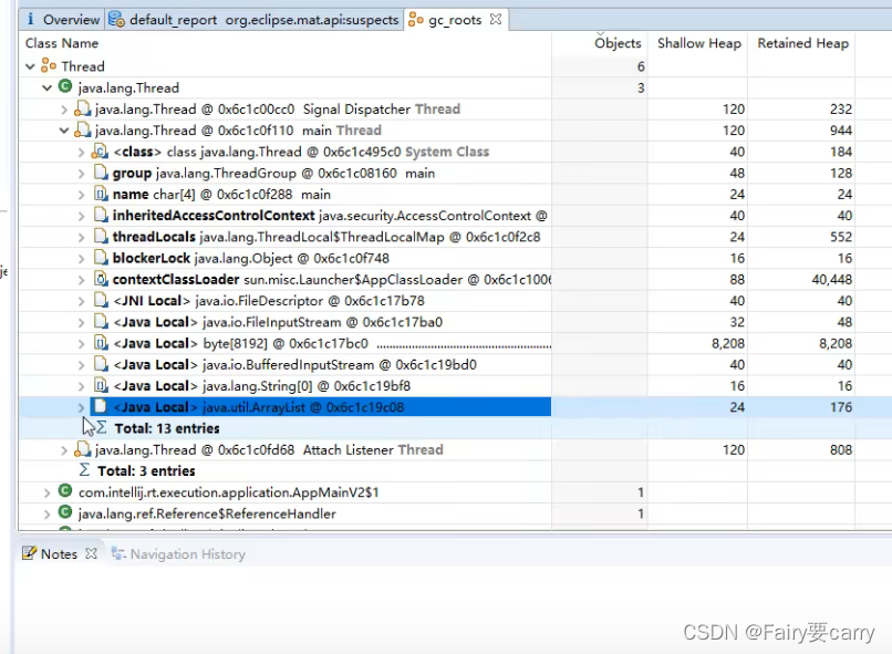 ?MAT(可以用来查看根对象,因为根对象及其引用的对象是不会被垃圾回收的)