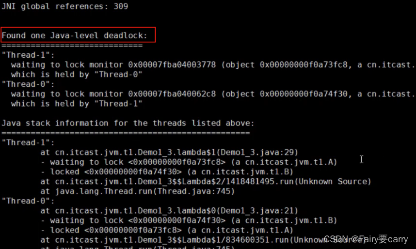 此外如果发生了线程死锁,会在jstack命令的最后面展示: