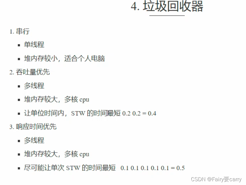 吞吐量优先是注重效率的:一次垃圾回收清理的较多,其他线程等待耗时较长——>吞吐量优先,也就是垃圾回收器回收时间更长;