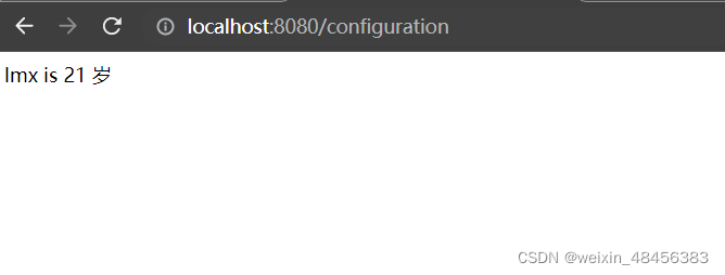 return configurationBean.getName()+" is " +configurationBean.getAge()+" 岁";