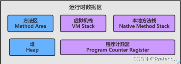 - 方法区(Method Area): 用于存储已被虚拟机加载的类信息、常量、静态变量、即时编译器编译后的代码等数据. 方法编译出的的字节码就是保存在这个区域
