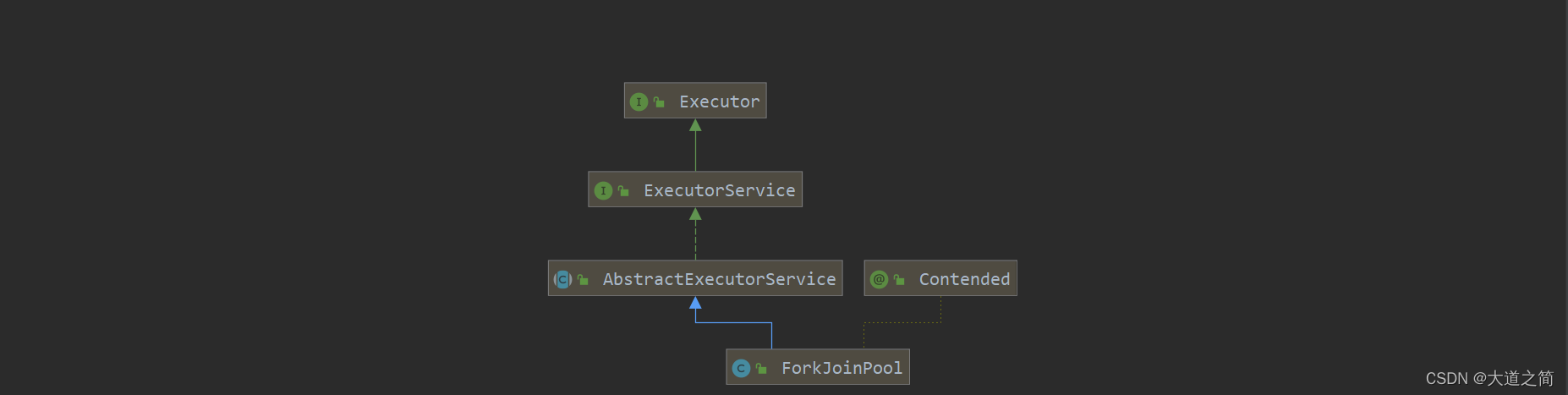 ?类图如下,基于分治法,双端窃取算法实现的一种线程池。