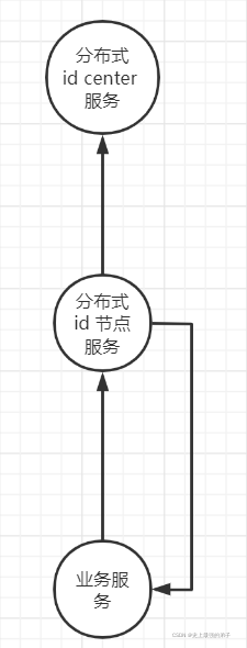 1.获取分布式id 角色会有三个角色,分为:业务服务,分布式id节点服务,分布式id 中心服务。