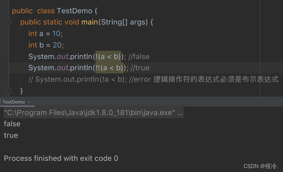 // System.out.println(!a < b); //error 逻辑操作符的表达式必须是布尔表达式