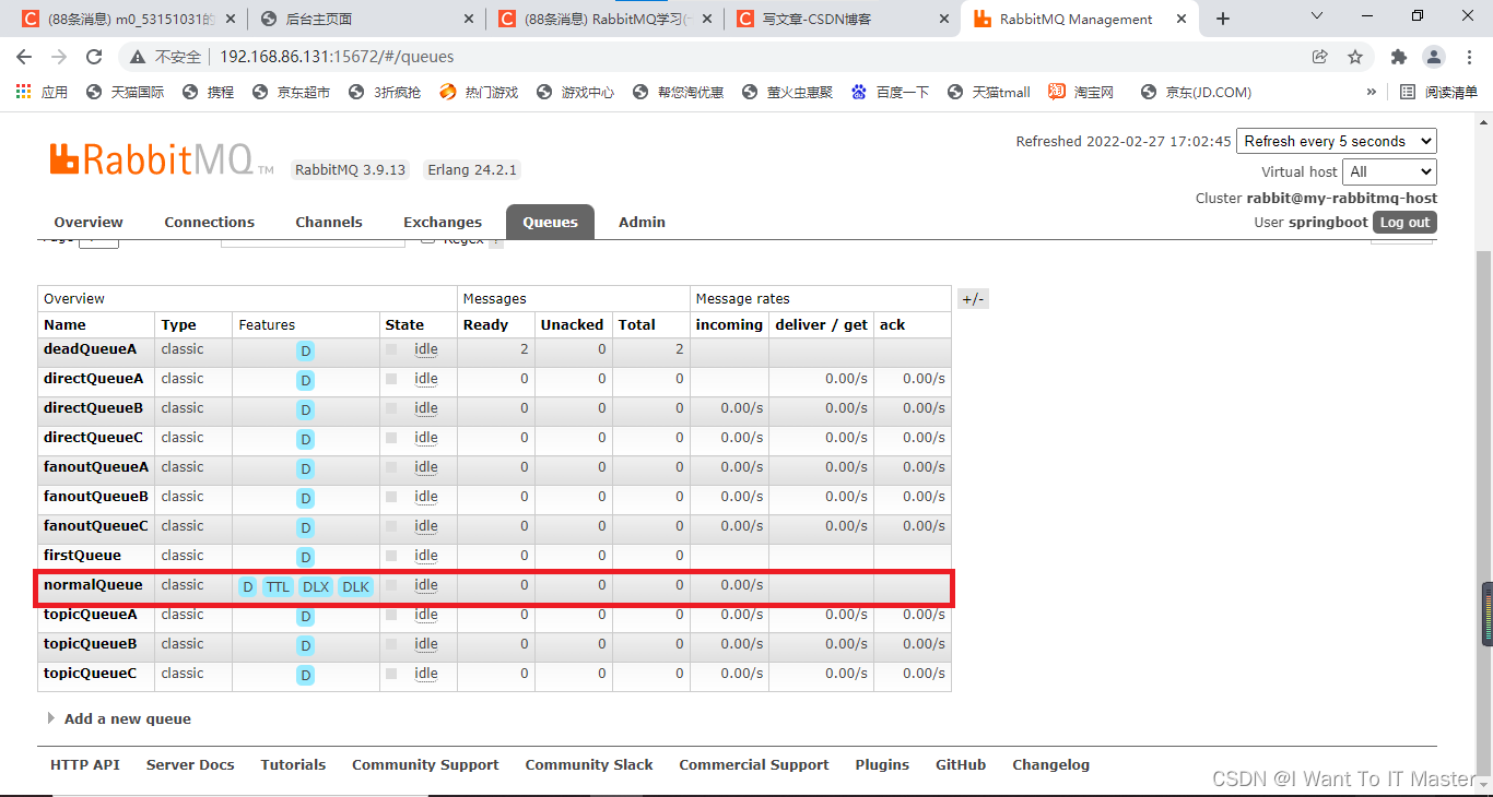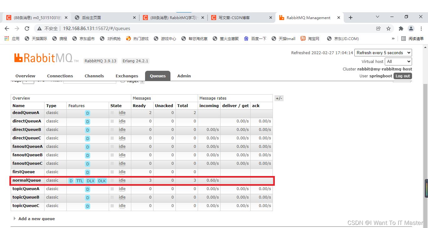 死信交换机(DLXs)就是普通的交换机,可以是任何一种类型,也可以用普通常用的方式进行声明。
