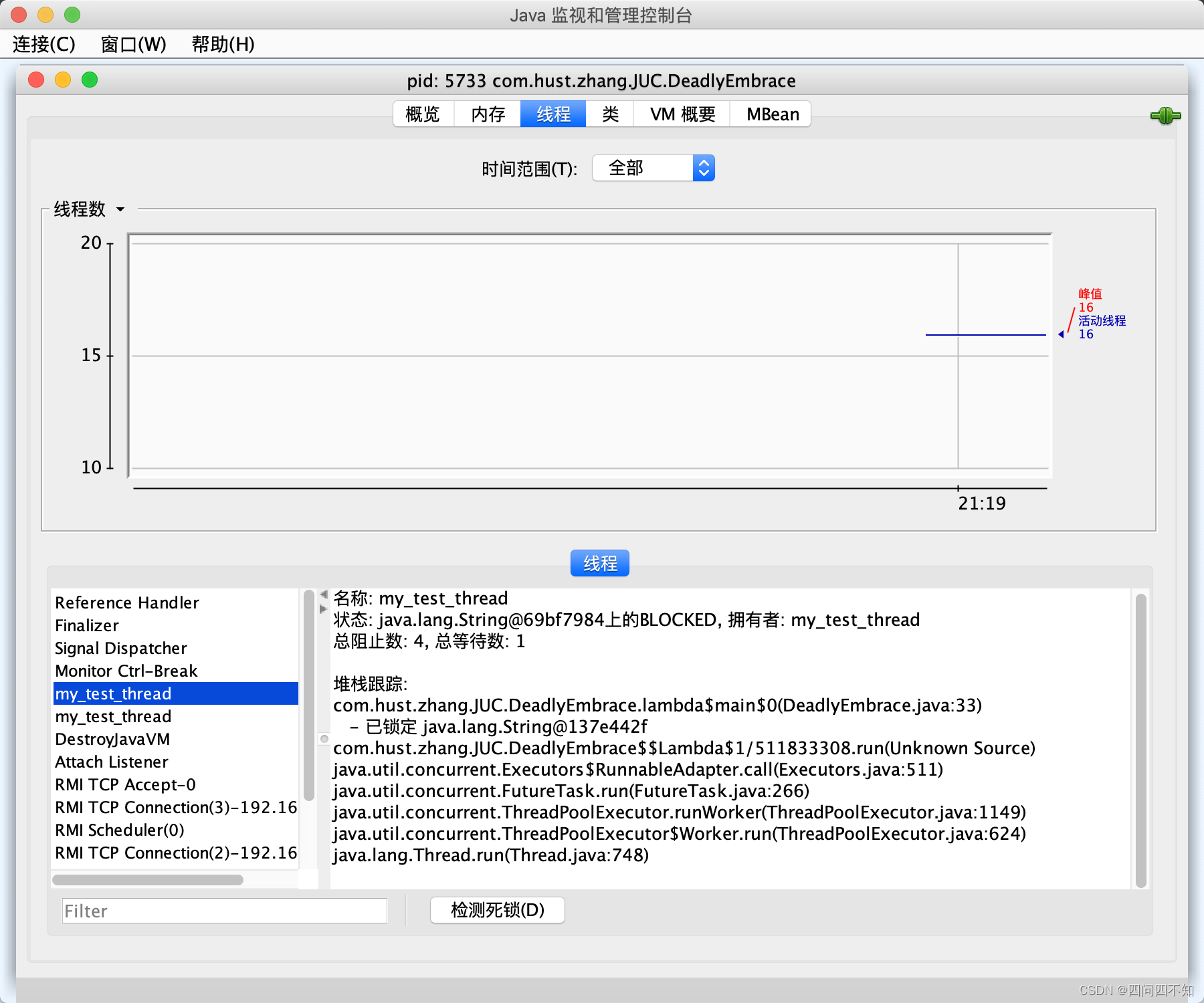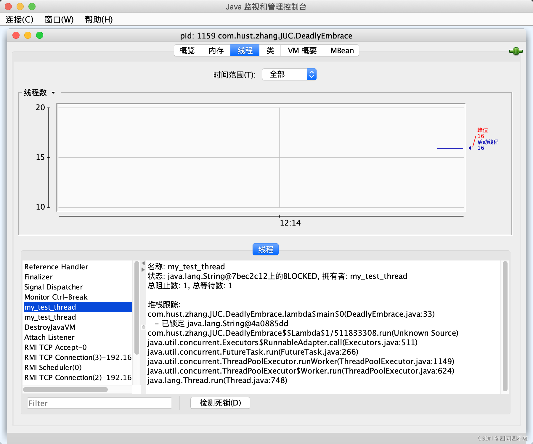 ?再来看一下线程,IDEA使用Jconsole工具就可以看到Java应用程序中的所有线程,