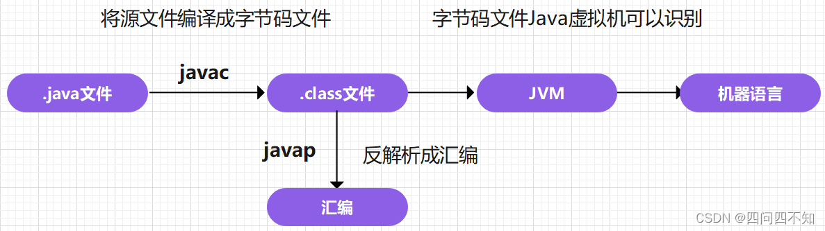有人可能好奇为什么非要先把java编译成class文件,再反编译成汇编语言,因为汇编语言是最接近机器的语言,通过它我们可以了解到机器是如何操作的,