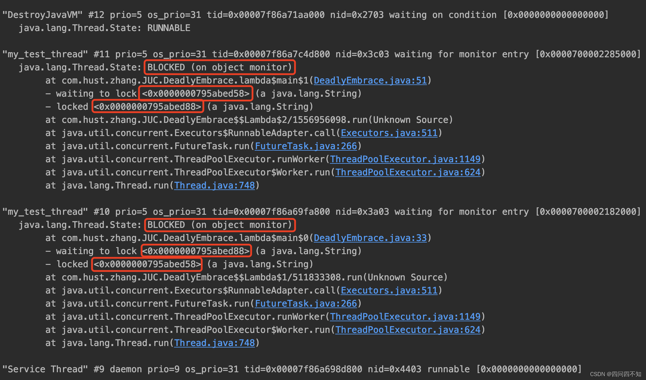 // 如果出现死锁,通过jps查看进程,然后jstack PID查看堆栈信息;或者使用jconsole查看线程状态