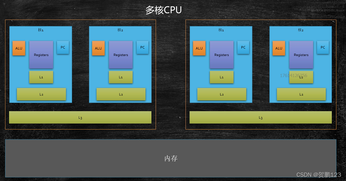 ? CPU每次去内存里面读写数据太慢了,为了更快的读写数据,所以CPU在自己家里加了一层缓存,每次都是先从自己的缓存读写数据,这样CPU的利用率又提高了,所以下图的内存不是电脑的内存,cpu自己的内存测试