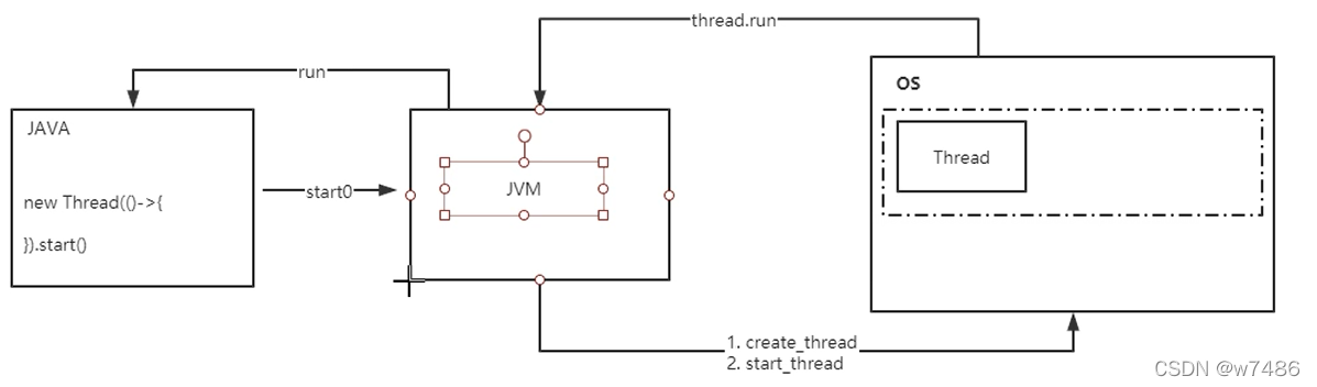 start()底层是一个native方法 java本身不提供线程 线程是操作系统提供的