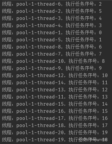 System.out.println("线程:"+Thread.currentThread().getName()+",执行任务序号:"+num.getAndIncrement());