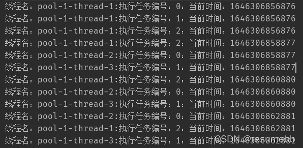 System.out.println("线程名:"+Thread.currentThread().getName()+":执行任务编号:"+num+":当前时间:"+System.currentTimeMillis());
