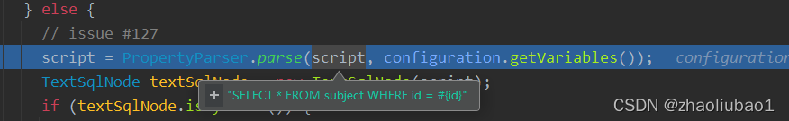 通过我们前面的讲解 我们已经知道了 sql来源 ,所以如果我么的来源是注解并且没有<script>标签那么他将会走else逻辑,比如我们现在拿到了一条这样的sql: