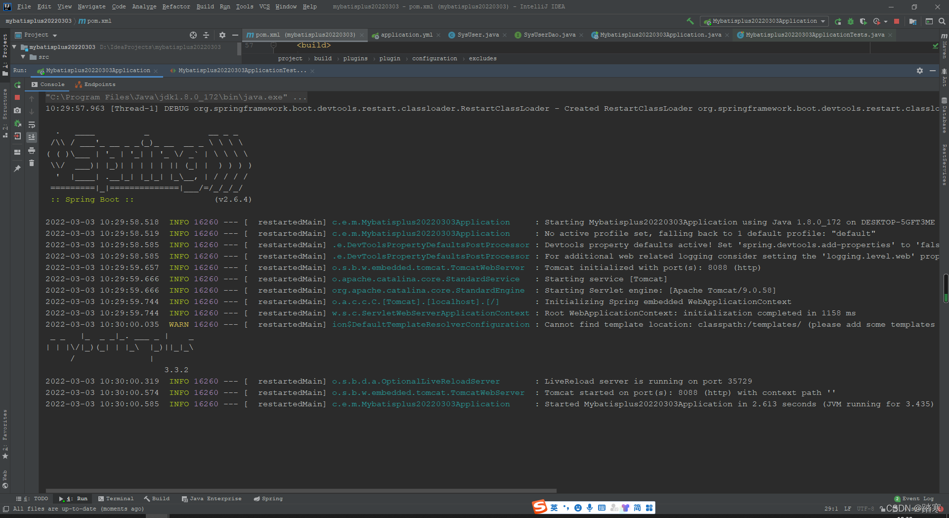 SpringApplication.run(Mybatisplus20220303Application.class, args);
