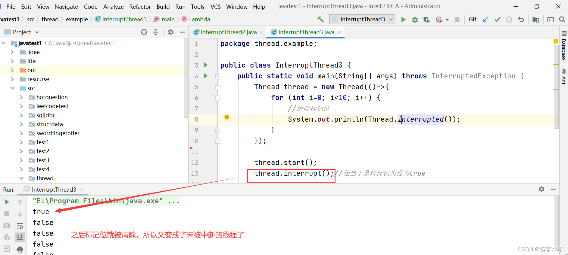 ?(4)有关Thread.interrupted()和Thread.currentThread().isInterrupted()的区别