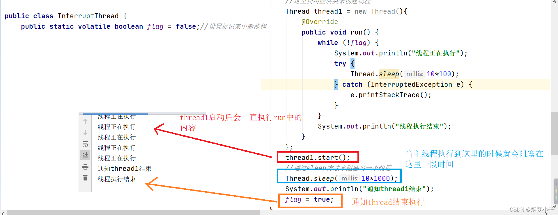 可以通过使用Thread.interrupted() 或者 Thread.currentThread().isInterrupted() 代替自定义标志位。因为Thread内部也是通过变量来作为线程中断的标志。