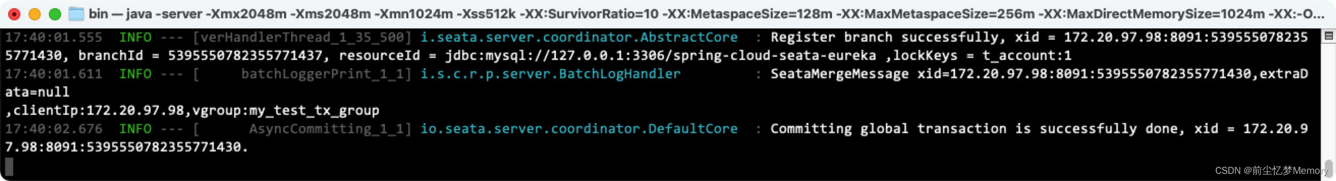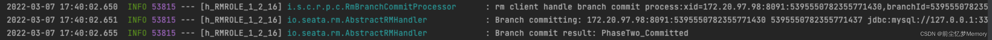 ????????在Seata服务端,我们也能清楚的看到xid=172.20.97.98:8091:5395550782355771430这个全局事务的提交情况