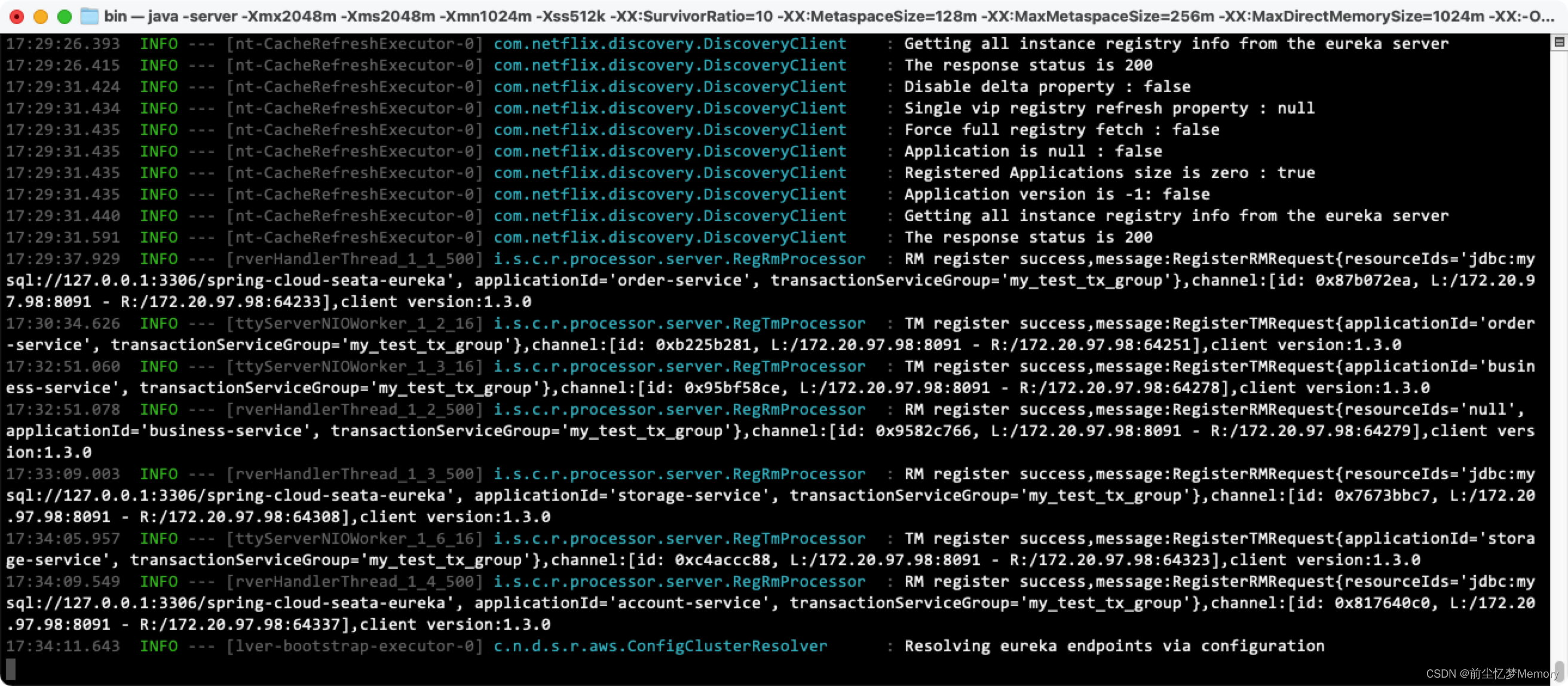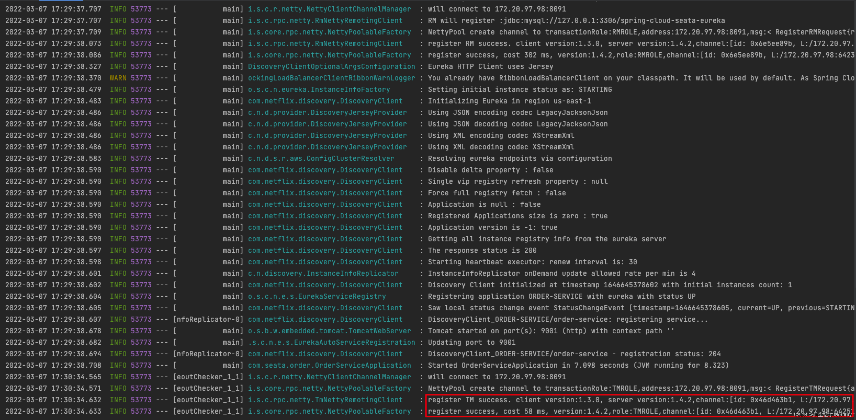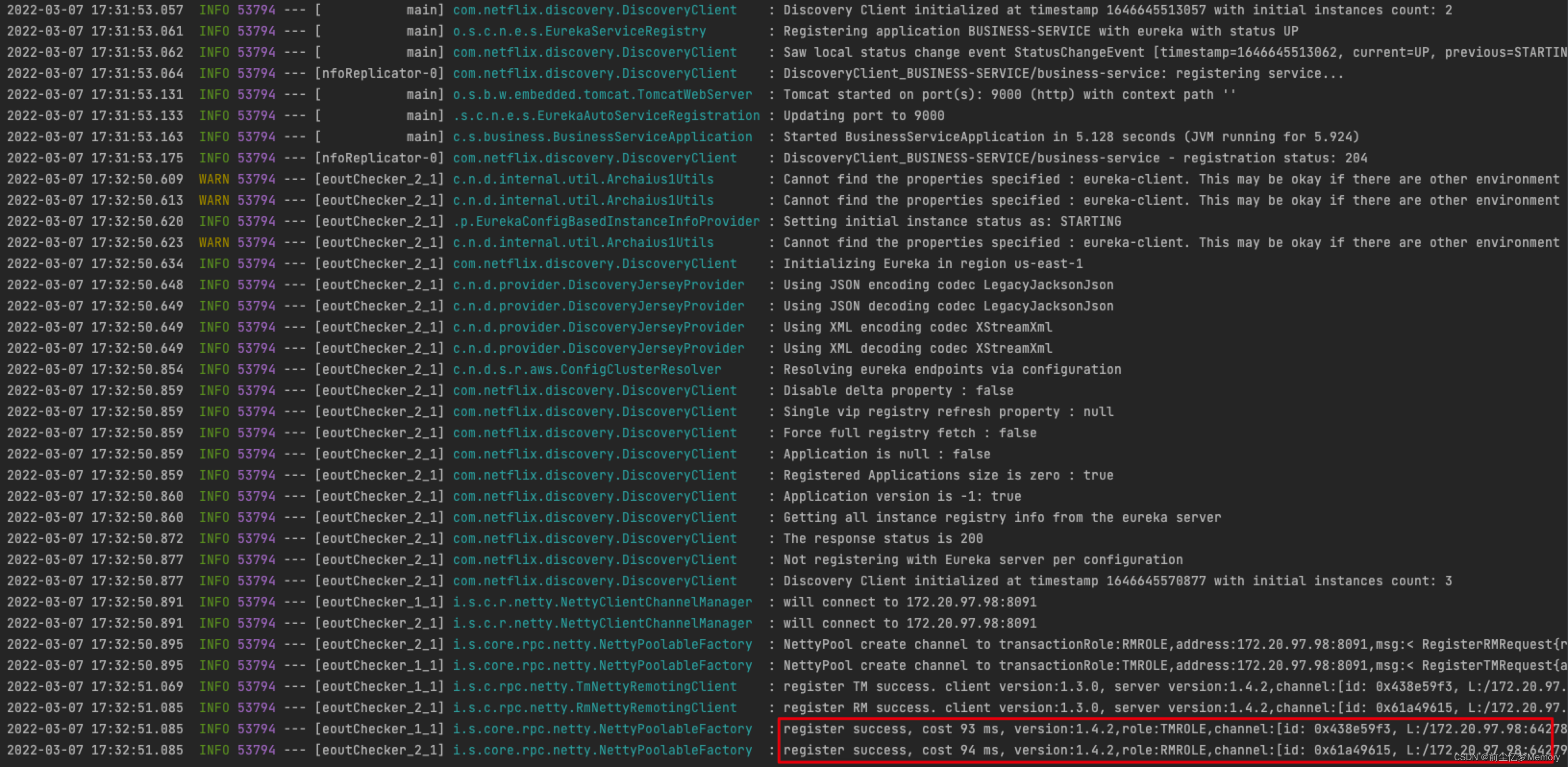 ????????启动business服务,“register RM success.?”,表示RM已经注册到TC。