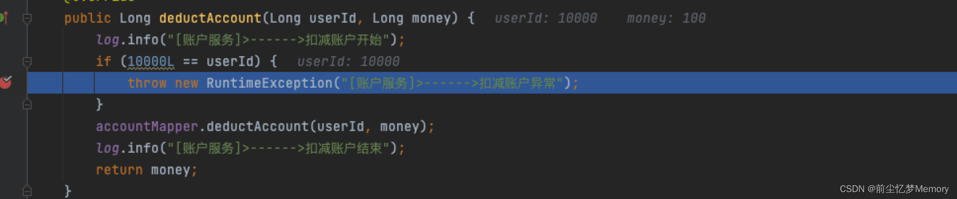 throw new RuntimeException("[账户服务]>------>扣减账户异常");