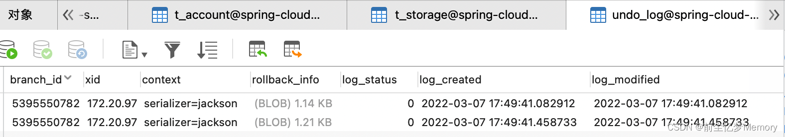 ????????回滚的时候,是将之前保存的undo_log 取出来,进行数据恢复,在发生异常的地方,我们打上断点,再次请求,会发现undo_log表会将前面执行的日志保存下来