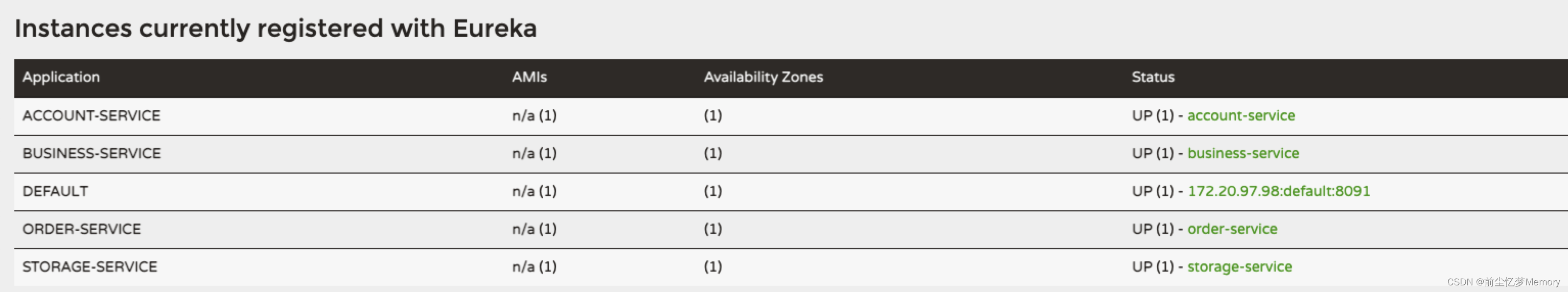 ????????打开eureka注册中心,我们会清楚的看到各个服务的健康状态: