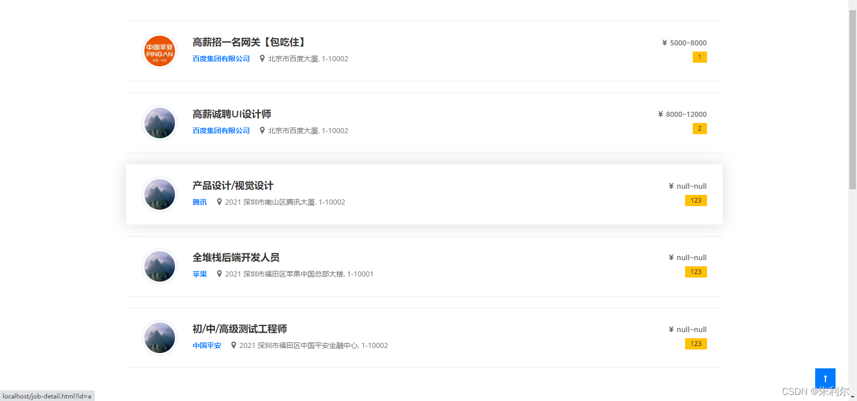 - 项目中推荐算法部分的实现需要评分数据支撑,请登录不同用户为职位提交评分、评论(每个景点不少于5个评分)