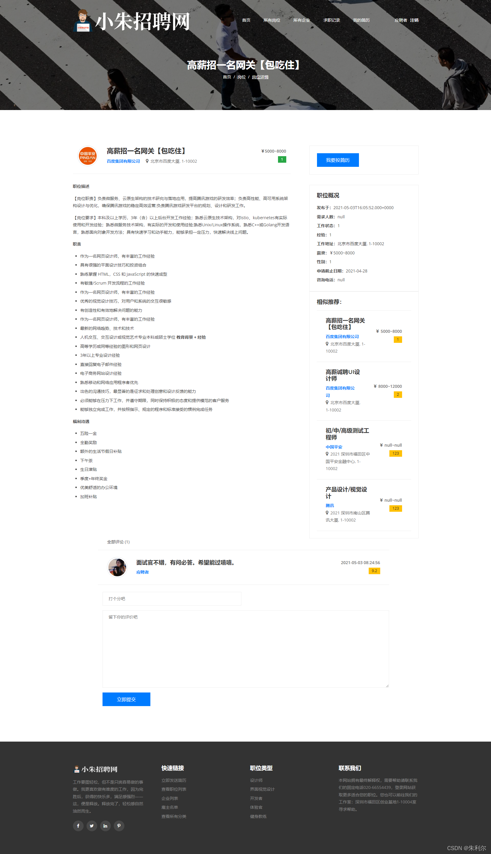 Java招聘网站源码+页面(职位查看、评论、简历发布、投递、结果、企业管理,职位推荐...)