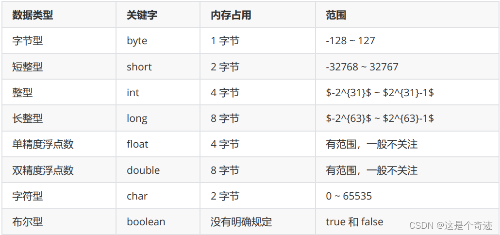 (1) 基本数据类型: