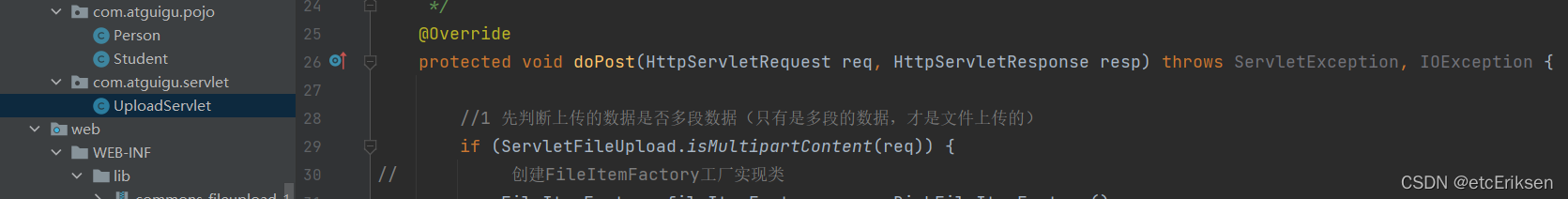 //创建用于解析上传数据的工具类ServletFileUpload类