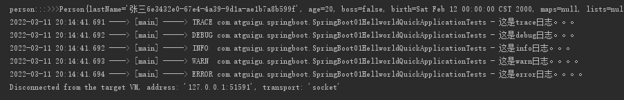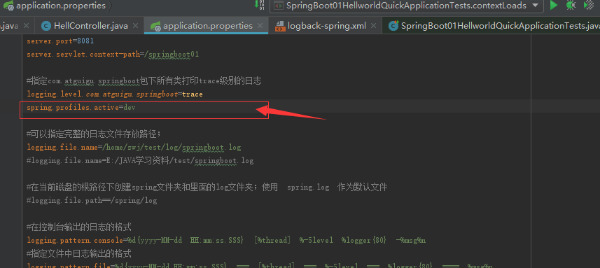 3.在application.properties配置文件中配置需要使用的日志
