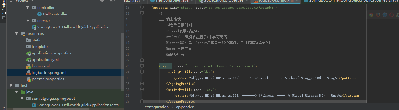 logback-spring.xml:日志框架就不直接加载日志的配置项,由SpringBoot解析日志配置,可以使用SpringBoot的高级Profile功能