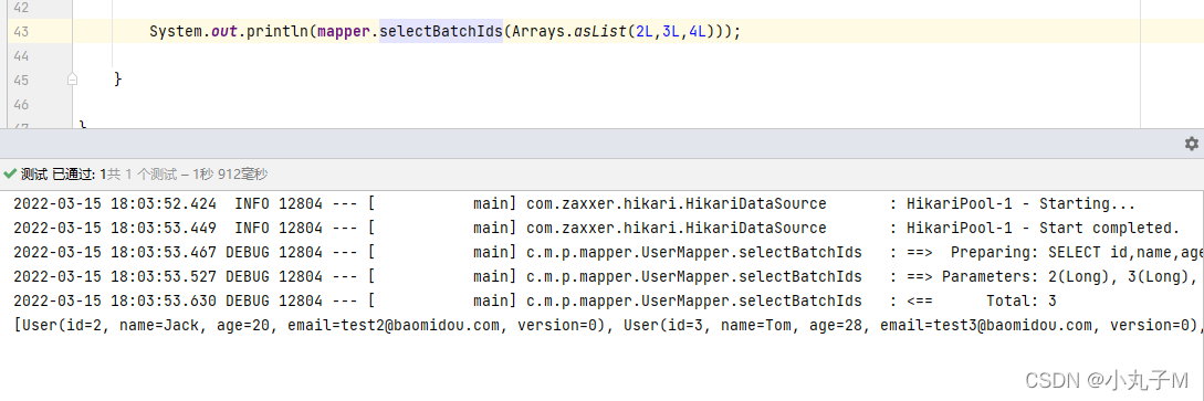 System.out.println(mapper.selectBatchIds(Arrays.asList(2L,3L,4L)));