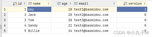 (5, 'Billie', 24, 'test5@baomidou.com');
