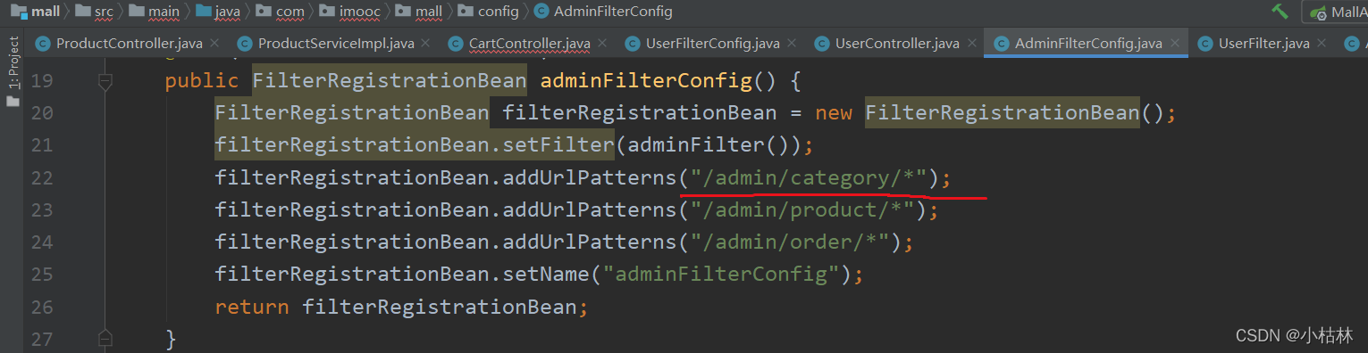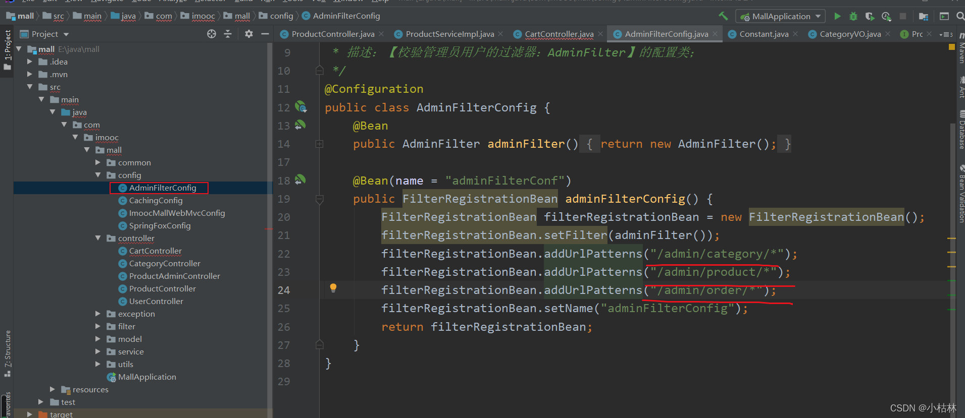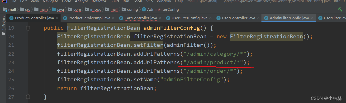 (2)声明:对本篇博客有不明白的地方,可以参考?【Spring Boot电商项目27:商品分类模块六:统一校验管理员身份;(选用【J2EE中的过滤器】来实现需求;重难点是【如何在Spring Boot项目中,使用过滤器】;)】 ;