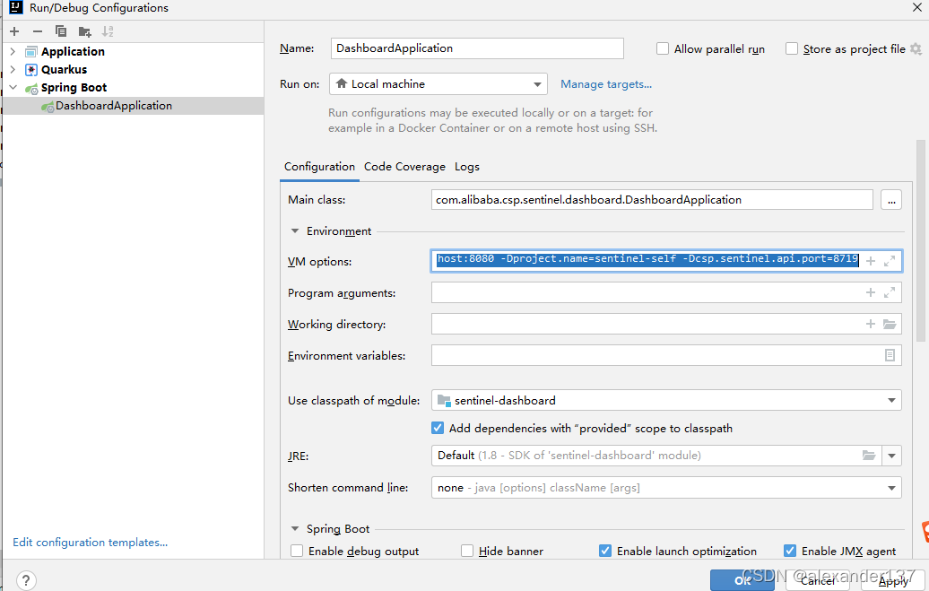 -Dcsp.sentinel.dashboard.server=localhost:8080 -Dproject.name=sentinel-self -Dcsp.sentinel.api.port=8719