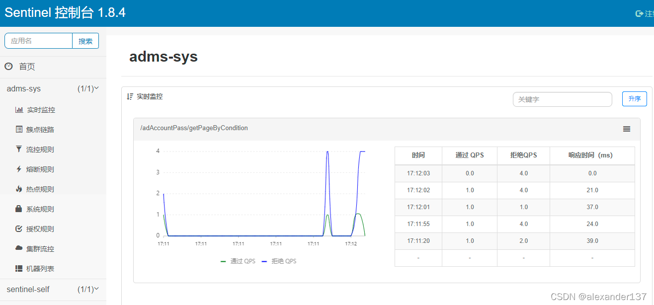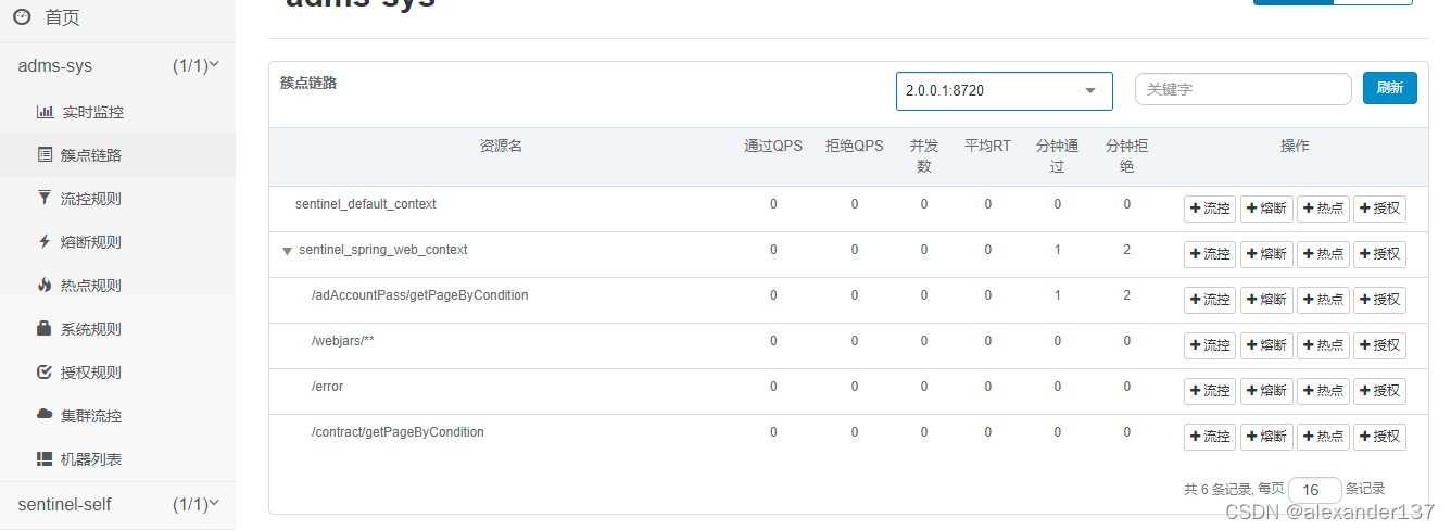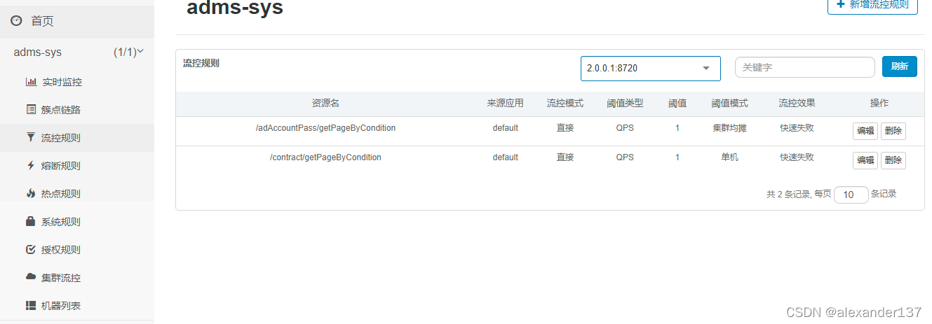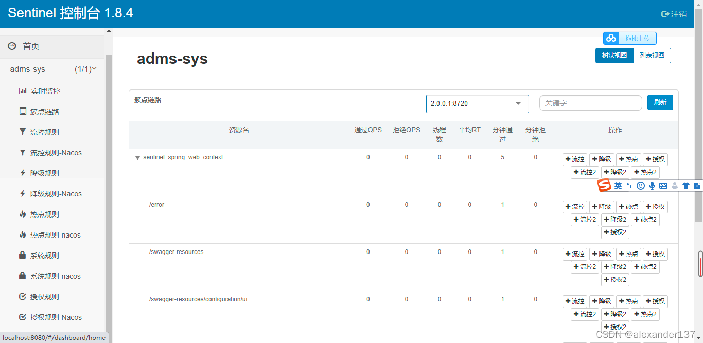 会发现?多了一些nacos的配置菜单,在簇点链路下的资源对应的流控2点击进入进行配置,即可快速配置具有持久化功能的对应指定接口的流控规则