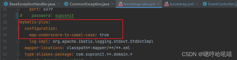 在yml文件中设置该属性,该配置项就是指将带有下划线的表字段映射为驼峰格式的实体类属性。