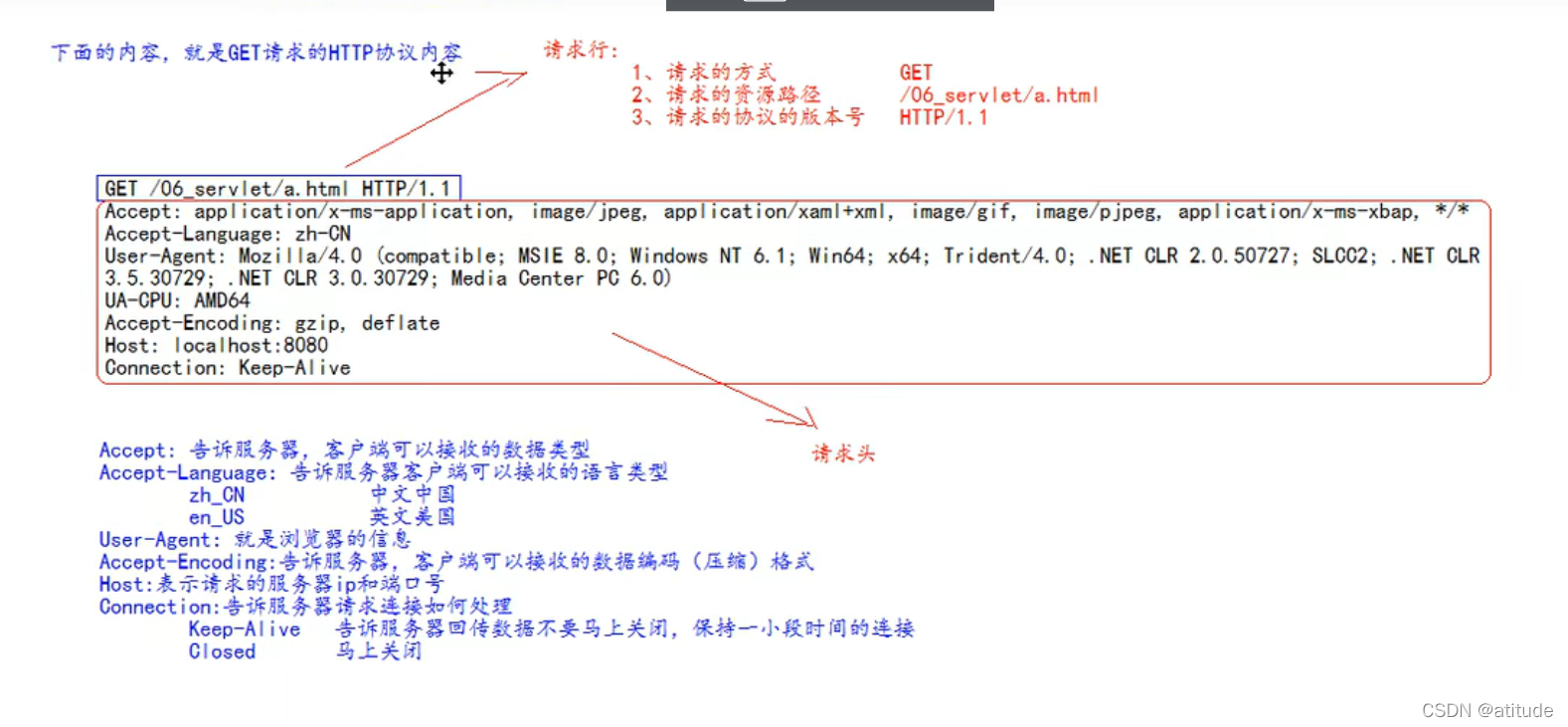 ????????Accept:表示客户端可以接收的数据类型 ????????Accpet-Languege:表示客户端可以接收的语言类型User-Agent:表示客户端浏览器的信息 ????????Host:表示请求时的服务器ip和端口号l