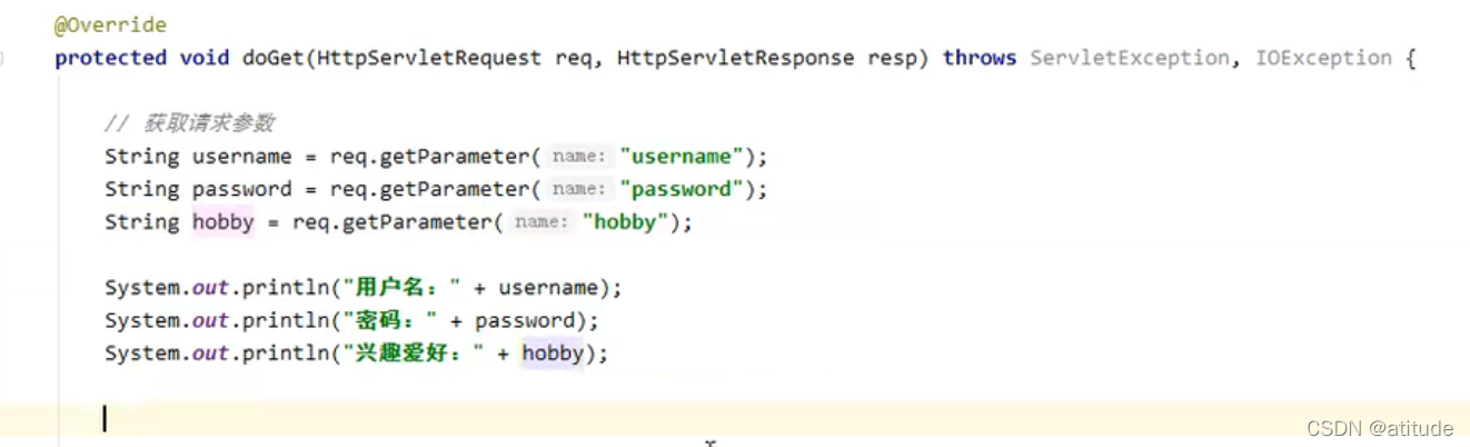 服务器端提交的数据,在servlet里面的doget里面获得参数。