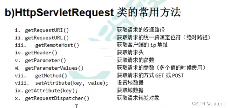 1.HttpServletRequest类 a)HttpServletRequest类有什么作用。 每次只要有请求进入Tomcat服务器,Tomcat服务器就会把请求过来的HTTP协议信息解析好封装到Request对象中。然后传递到 service方法(doGet和doPost)中给我们使用。我们可以通过 HttpServletRequest对象,获取到所有请求的信息。 ?