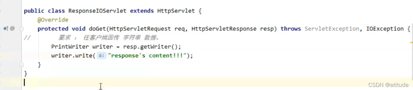 比如说后面的getWriter? 得到字符流。然后向浏览器输入信息。
