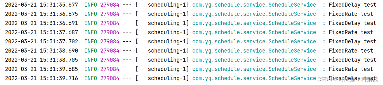 - 与 fixedRate 意思相同,只是使用字符串的形式,唯一不同的是支持占位符