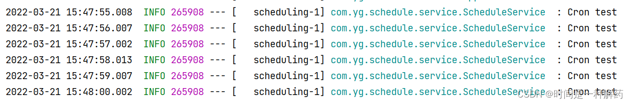 - @Scheduled(fixedDelayString = “5000”) //上一次执行完毕时间点之后5秒再执行