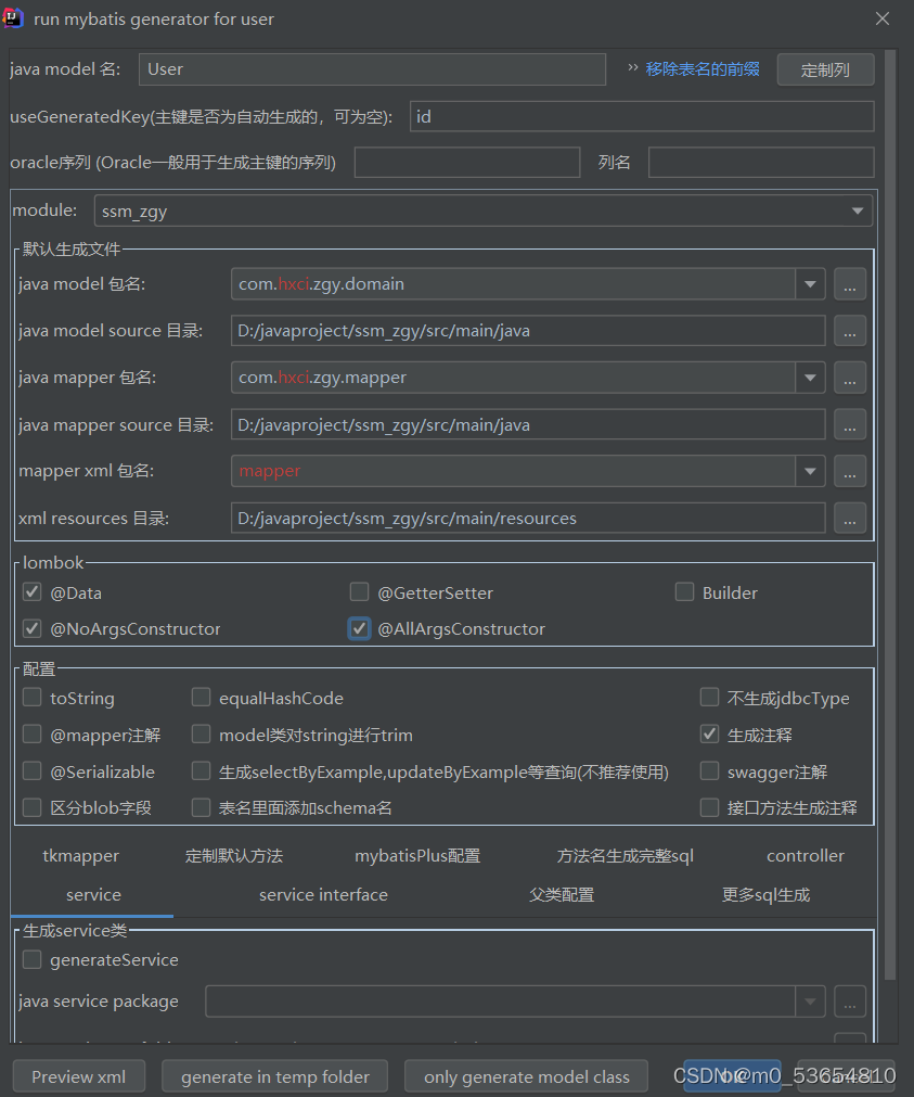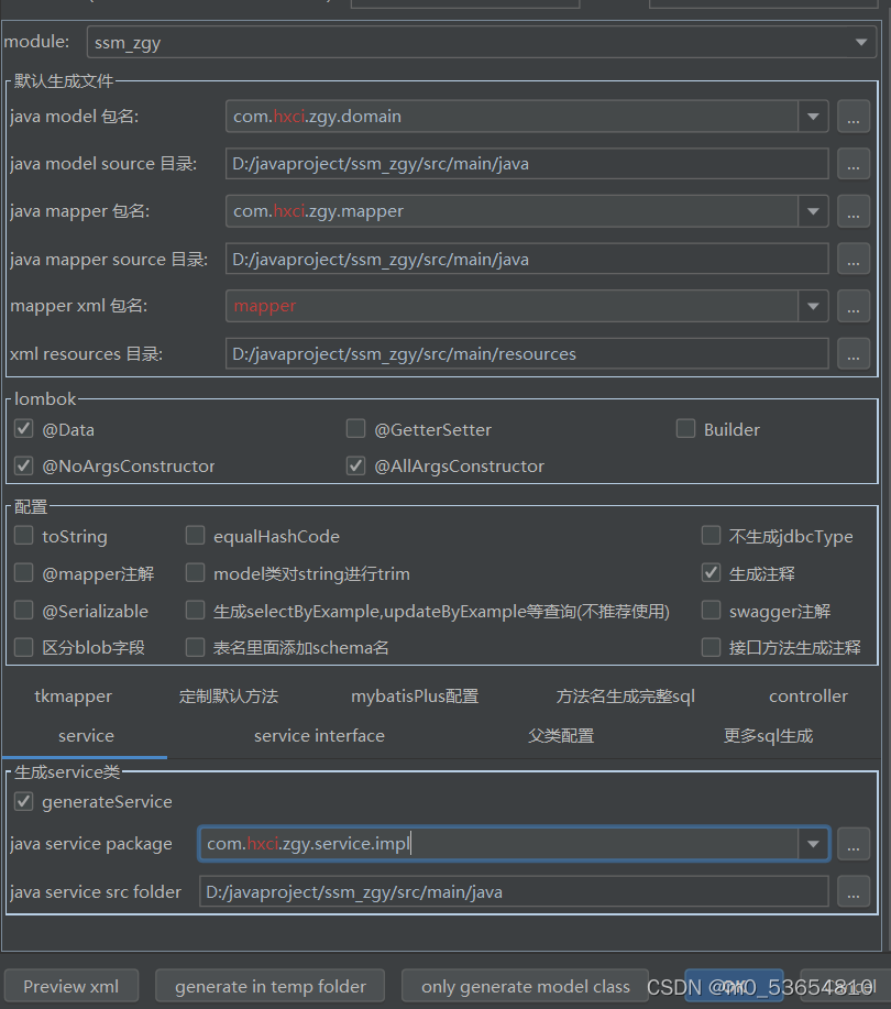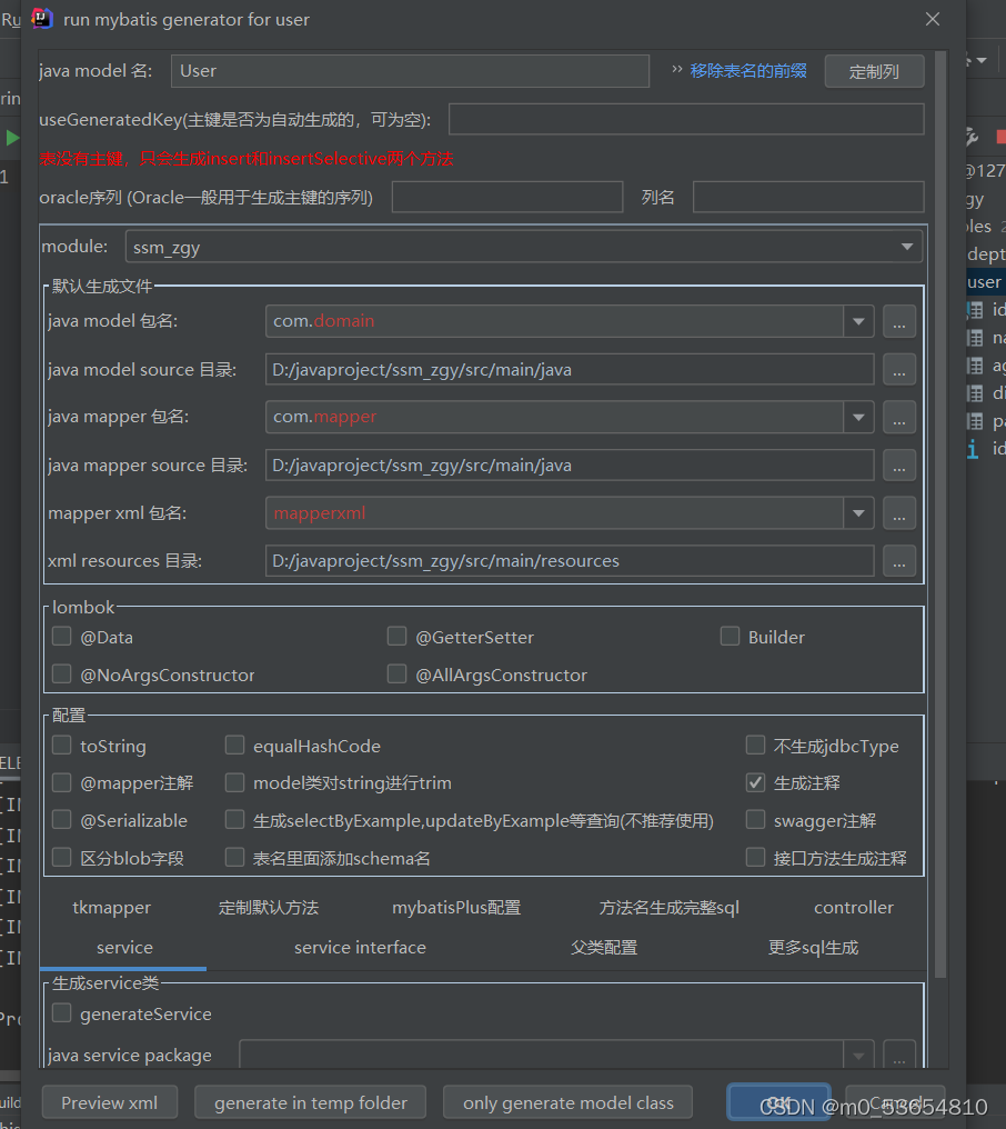 ?2.点击Mybatis generator。出现如下表格