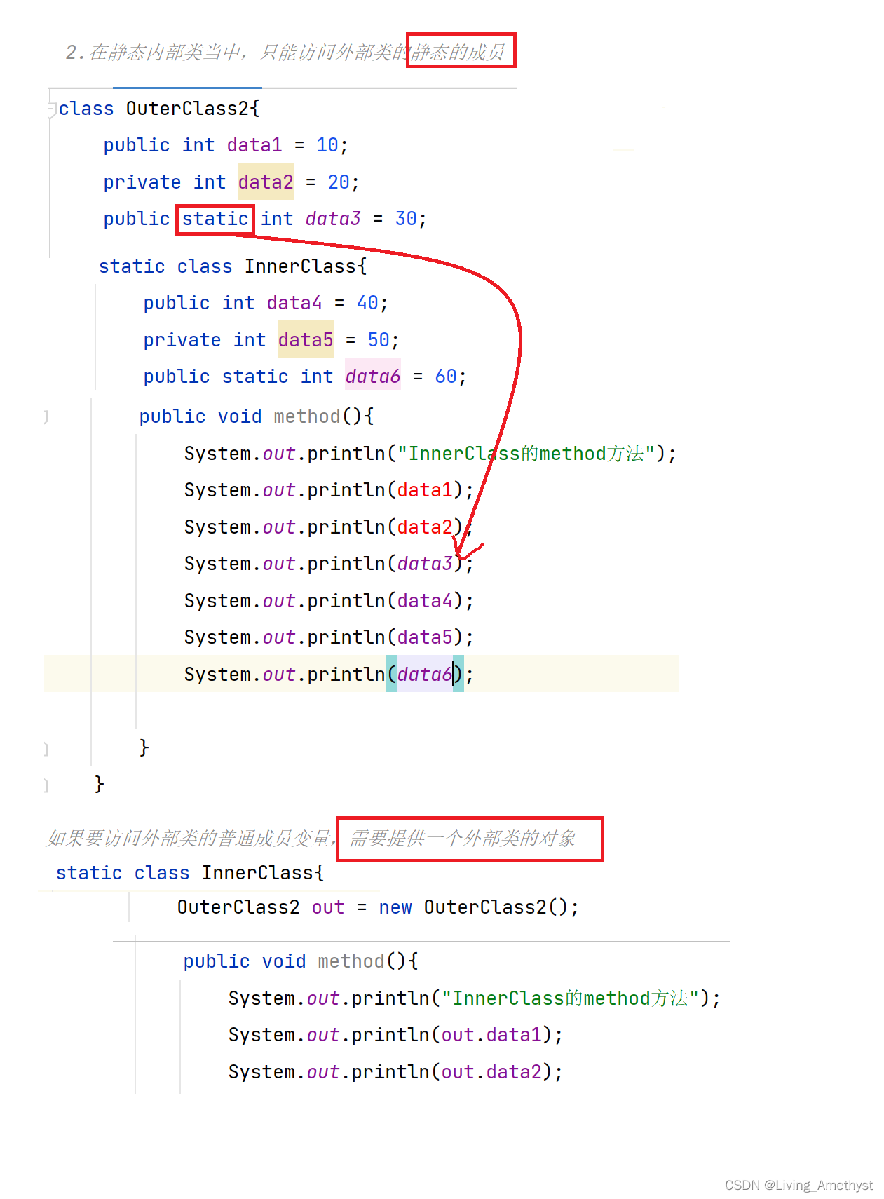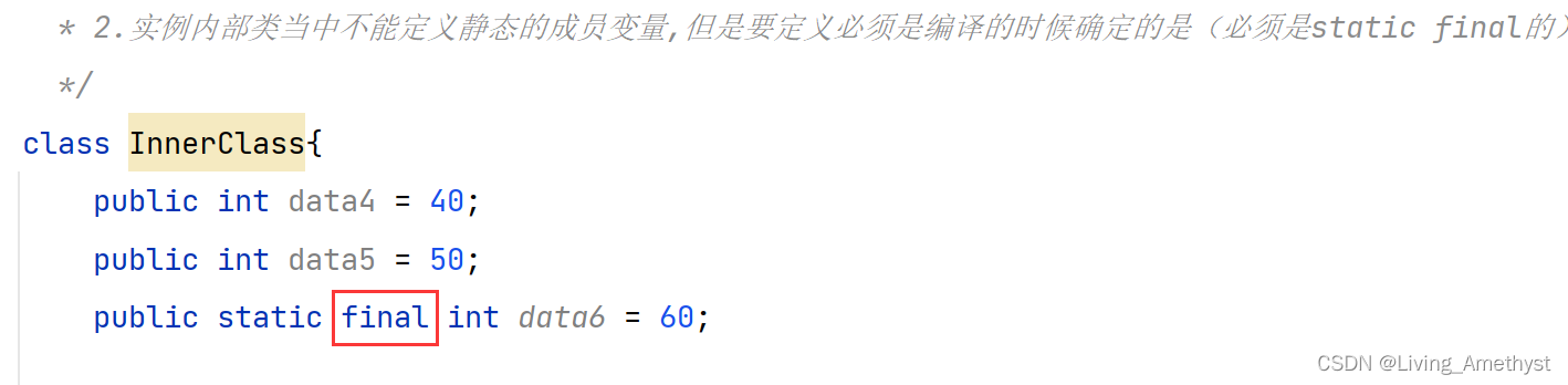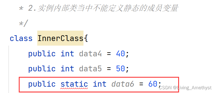 // 在内部类中只能访问外部类的静态成员