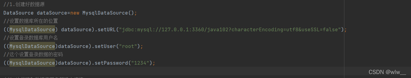 ((MysqlDataSource) dataSource).setURL("jdbc:mysql://127.0.0.1:3306/java102?characterEncoding=utf8&useSSL=true");