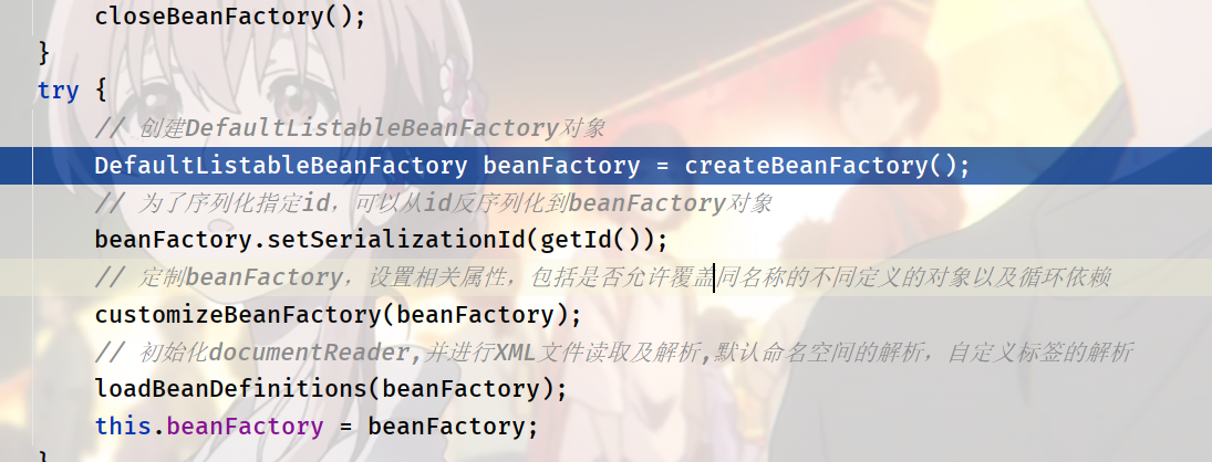 首先 进入到 refreshBeanFactory() 方法里面