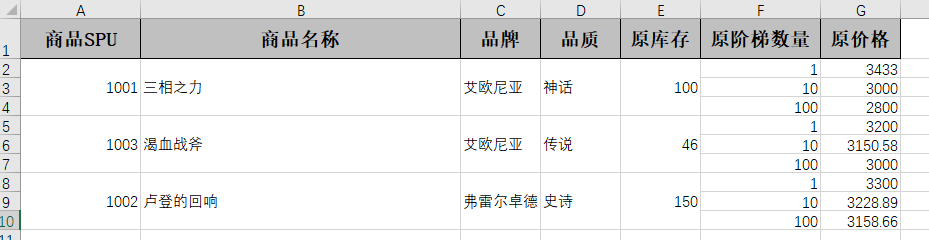 list.add(new GoodsComplexVo(1001, "三相之力", "艾欧尼亚", "神话", 100, 10, BigDecimal.valueOf(3000)));