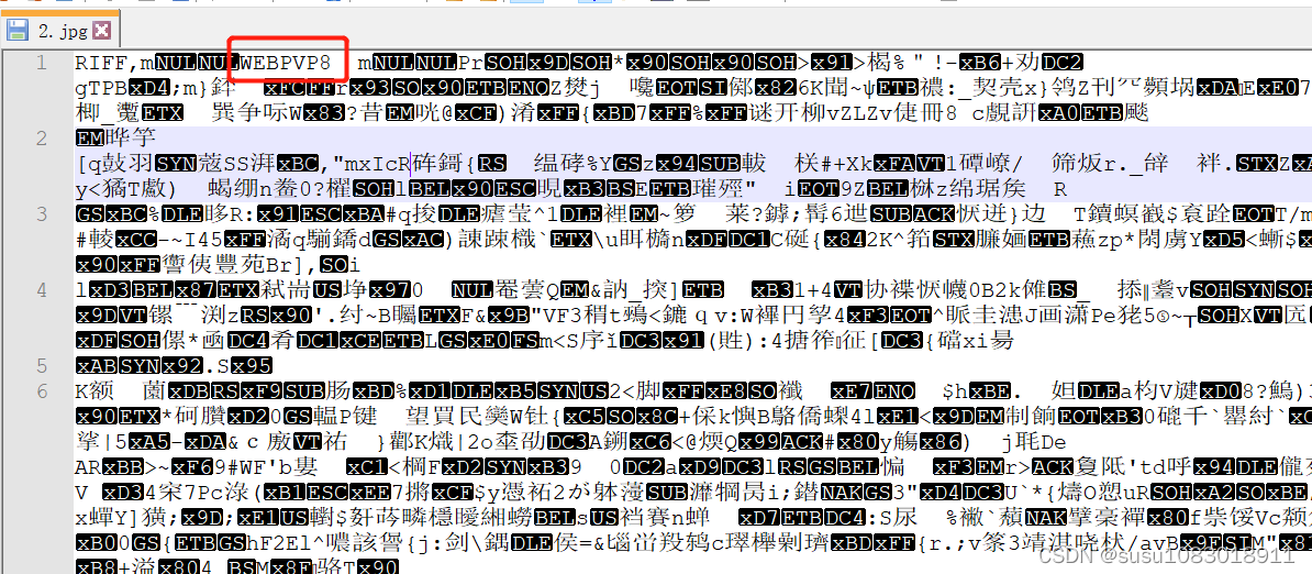 3.把图片拖到记事本中打开,看到格式竟然是WEBPVP8?,所以不支持,可更换其他图片。