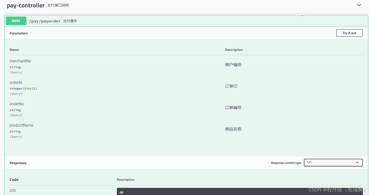 ?可以看到,在接口中添加到注解的说明信息,都显示在页面上了。根据代码中的注解说明,很方便知道参数的含义。